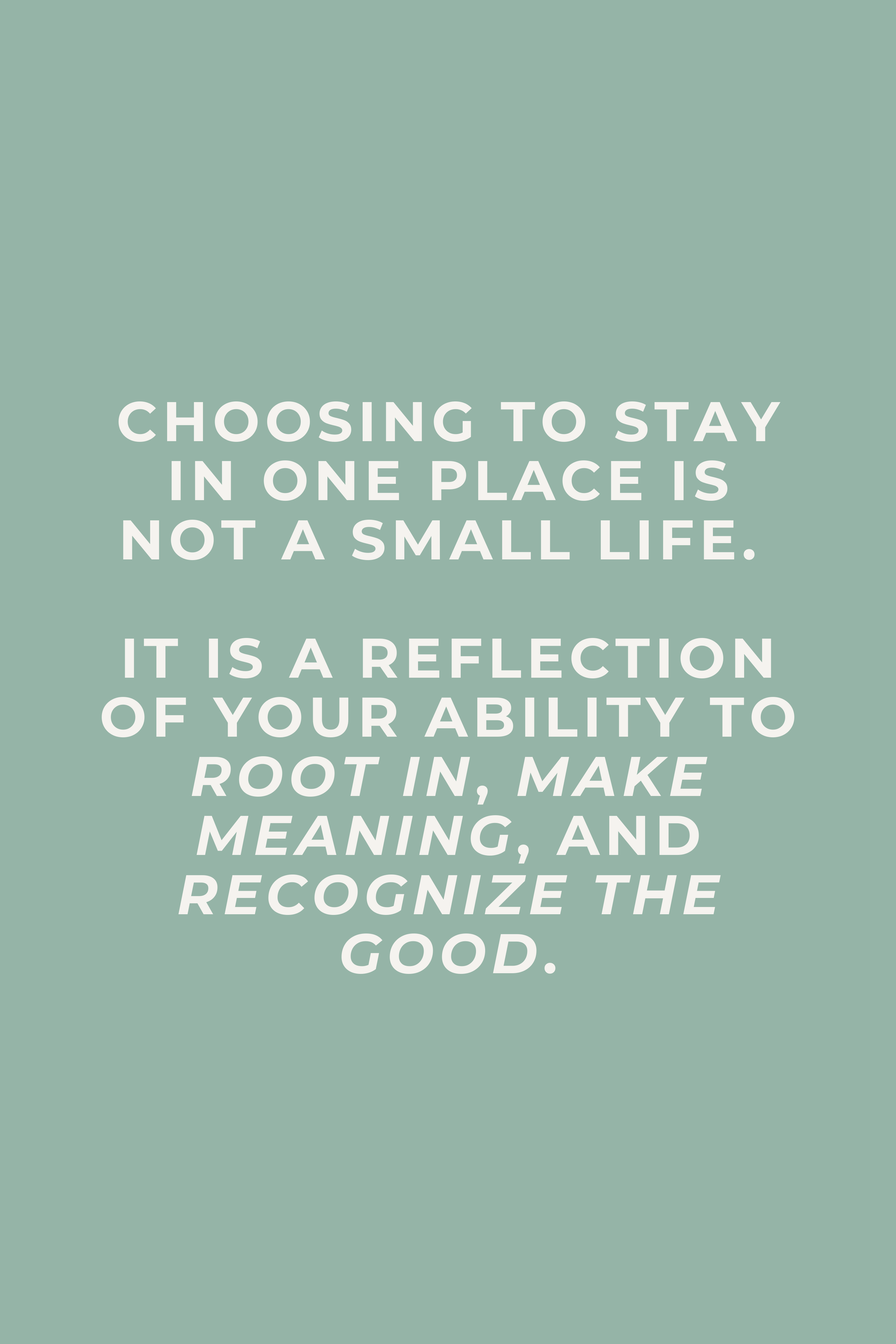 43. “Choosing to stay in one place is not a small life. It is a reflection of your ability to root in, make meaning, and recognize the good.” — Quartier Social Club