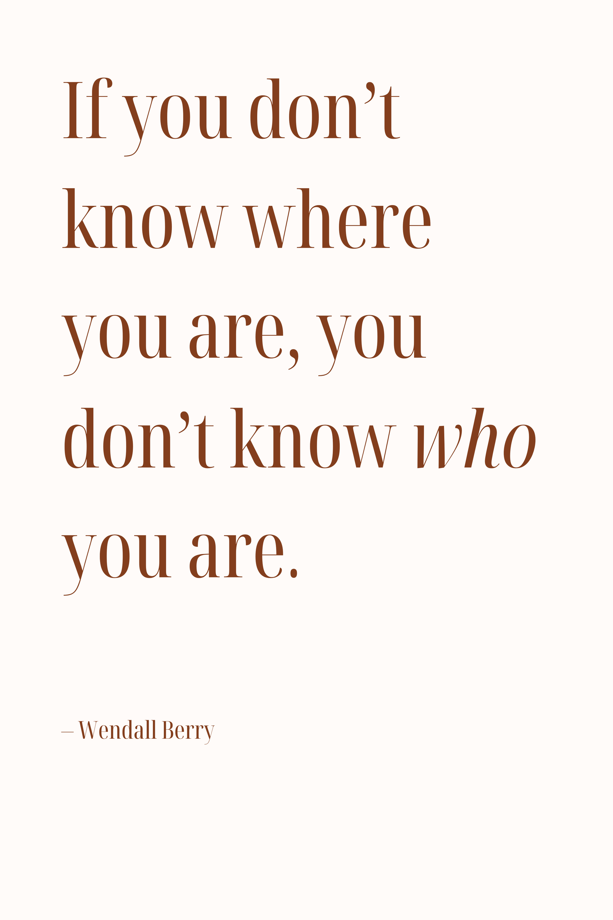 38. “If you don’t know where you are, you don’t know who you are.” — Wendall Berry