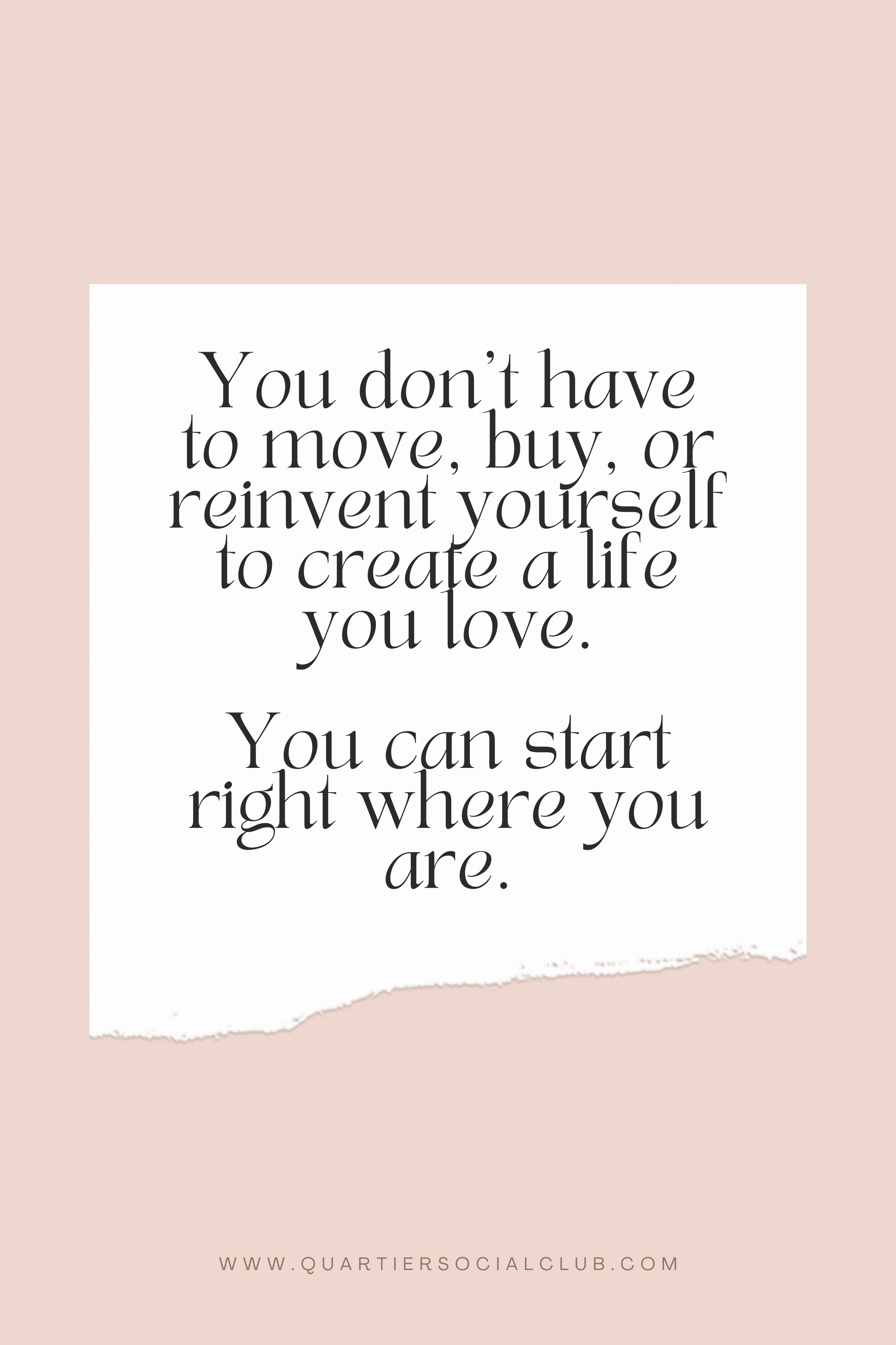24. “You don’t have to move, buy, or reinvent yourself to create a life you love. You can start right where you are.” — Quartier Social Club